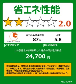 ※当商品は「CS-285DFR」の【住宅設備用】型番となっております。流通経路の違いによる