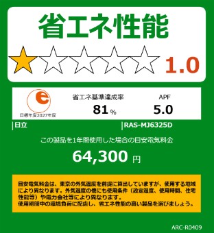 5. RAS-MJ6325D-W [単相200V][※関東甲信・北陸中部・関西・東北のみ送料無料 その他地域は下記表参照][配送ID:壁掛エアコン大型]