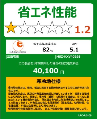 5. 【12/04入荷予定】MSZ-KXV4026S-W [単相200V][※関東甲信・北陸中部・関西・東北のみ送料無料 その他地域は下記表参照][午後時間帯指定(18時以降)不可][配送ID:壁掛エアコン中型]