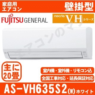 富士通ゼネラル 家庭用エアコン 2025年型「nocria」VHシリーズ 【12/09入荷予定】AS-VH635S2-W [単相200V][※関東甲信・北陸中部・関西・東北のみ送料無料 その他地域は下記表参照][午後時間帯指定(18時以降)不可][配送ID:壁掛エアコン大型]